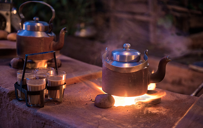 While being in your bed, you can see the entire jungle from the big glass windows. The rooms in true sense are a piece of art. The resort has a private tea-stall, serving organic tea made from the lemongrass which grows in abundance in the resort. The tea stall serves a variety of teas along with light refreshments in the evening. Now, this tea-stall is very interesting, the stall is situated under a tree, surrounded by lemongrass and mango trees and also has a cart on which the evening snacks are served, for a moment you will feel that you are actually visiting some remote village in the hills of Uttarakhand. The resort is a real gem in the list of resorts in Jim Corbett.
